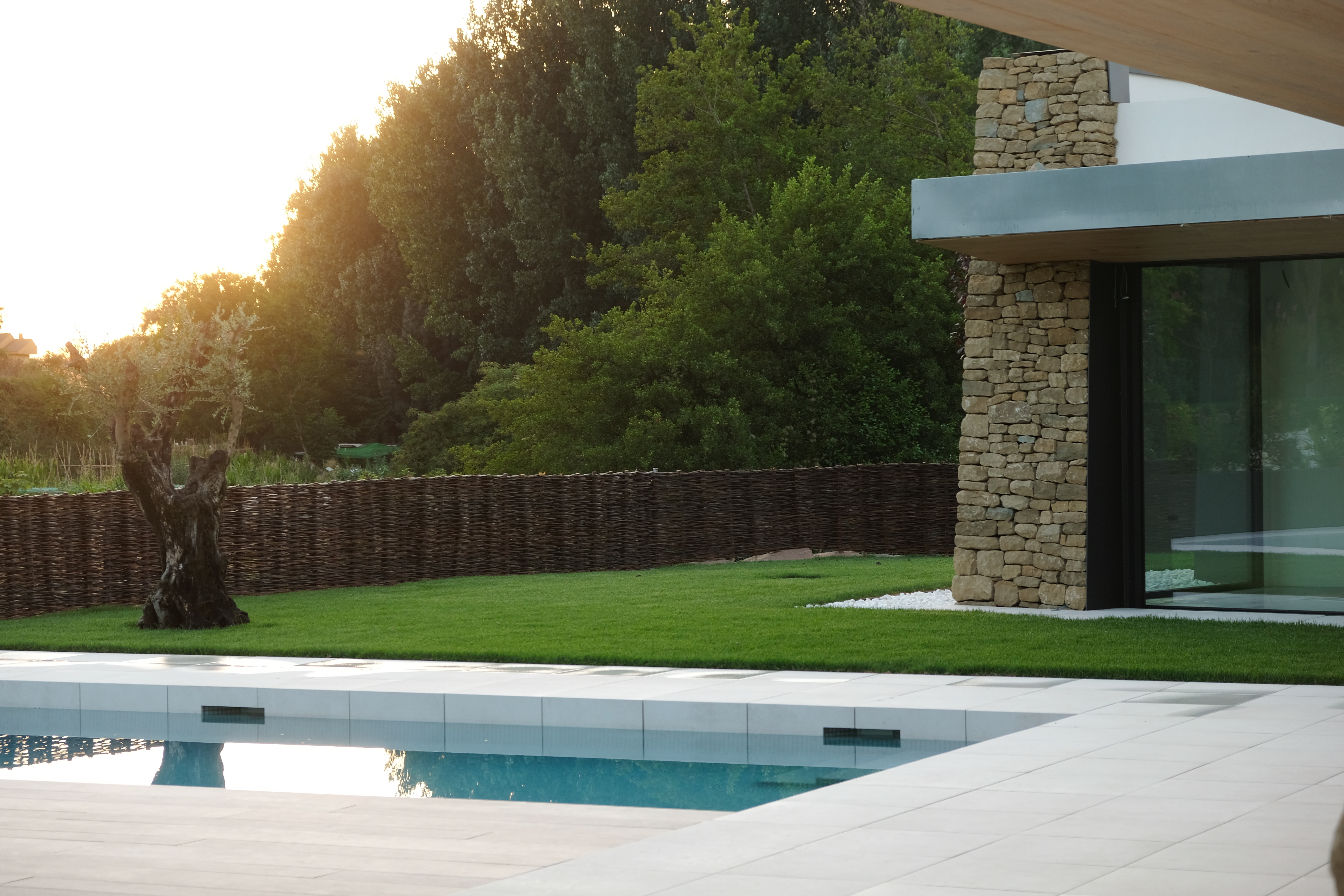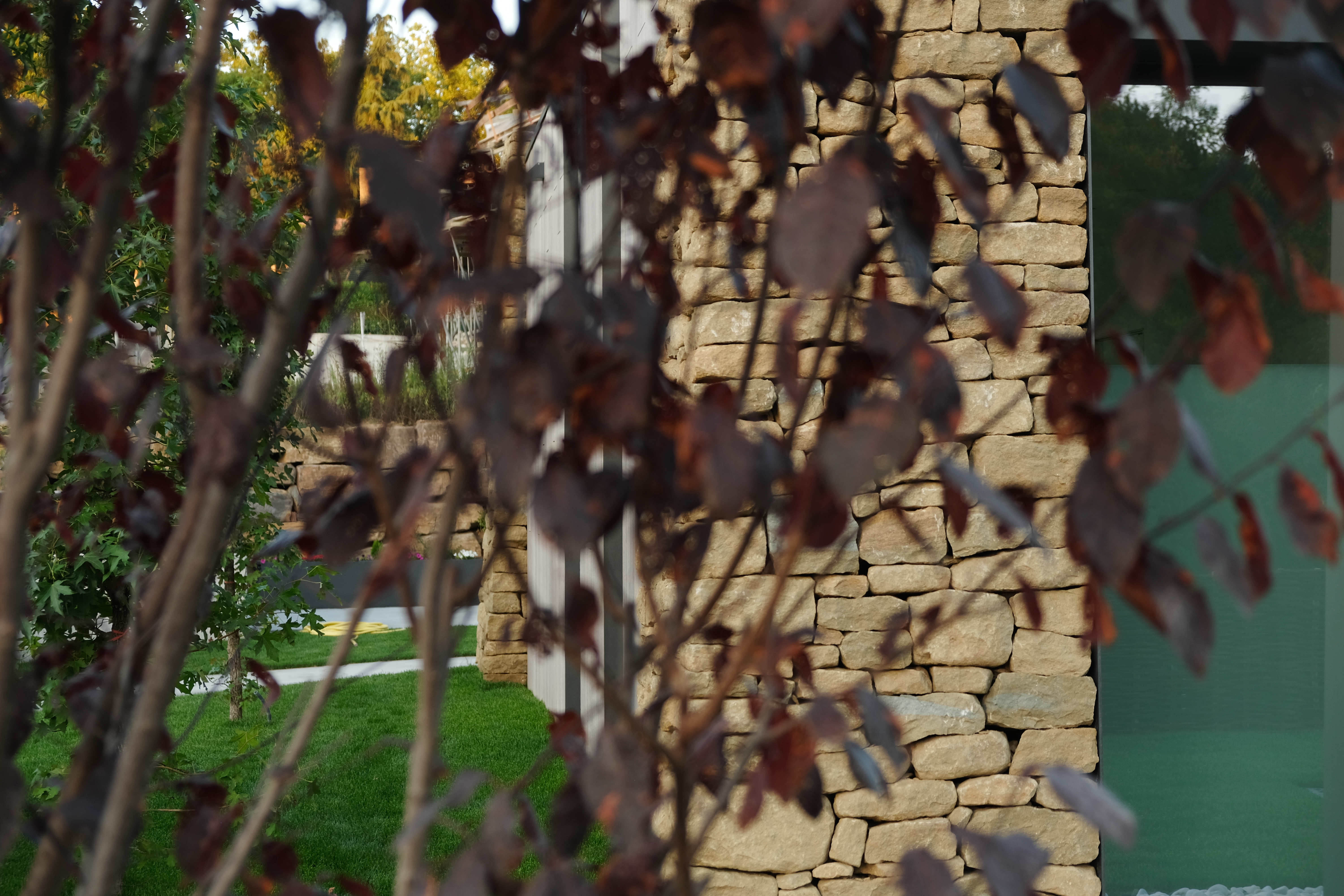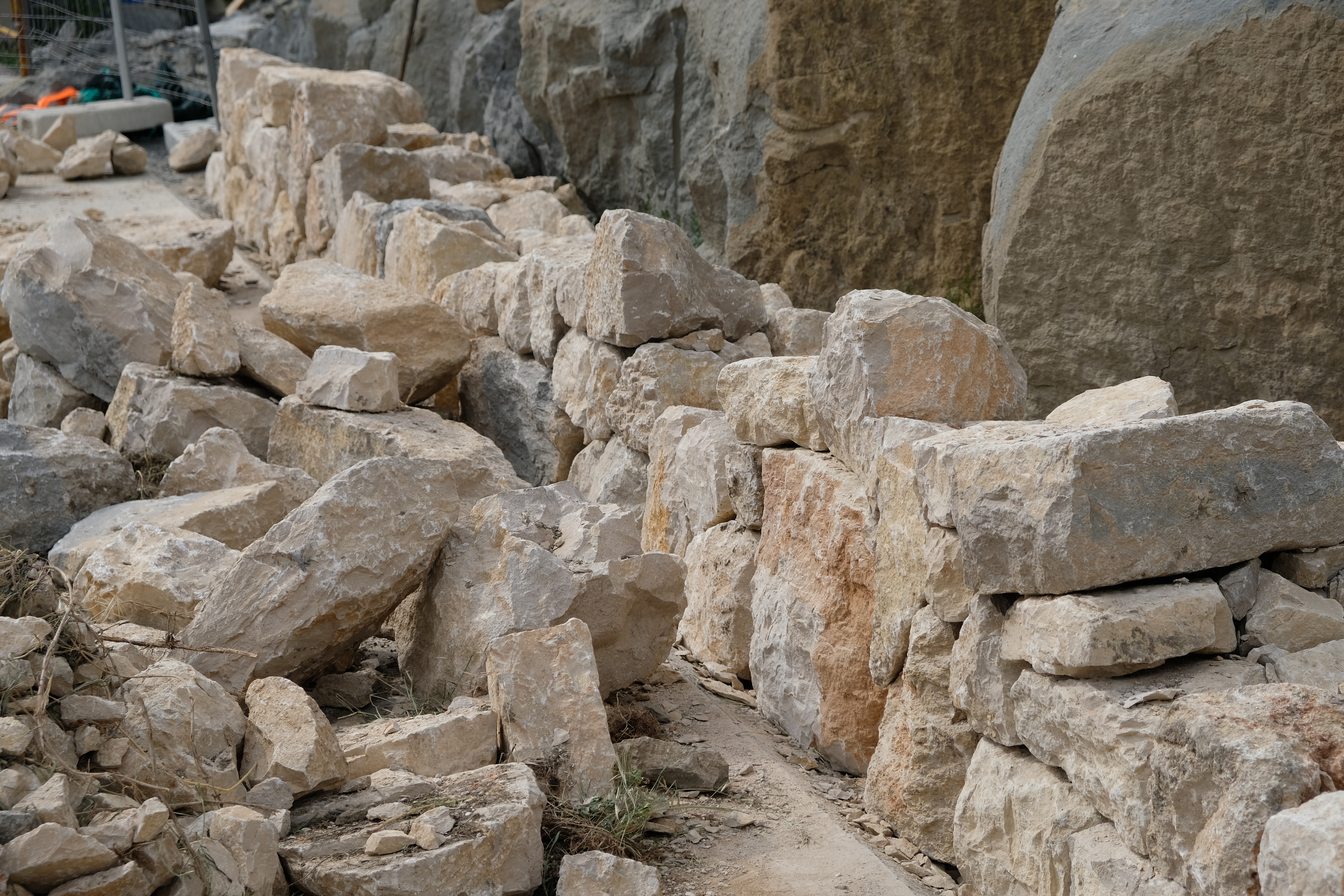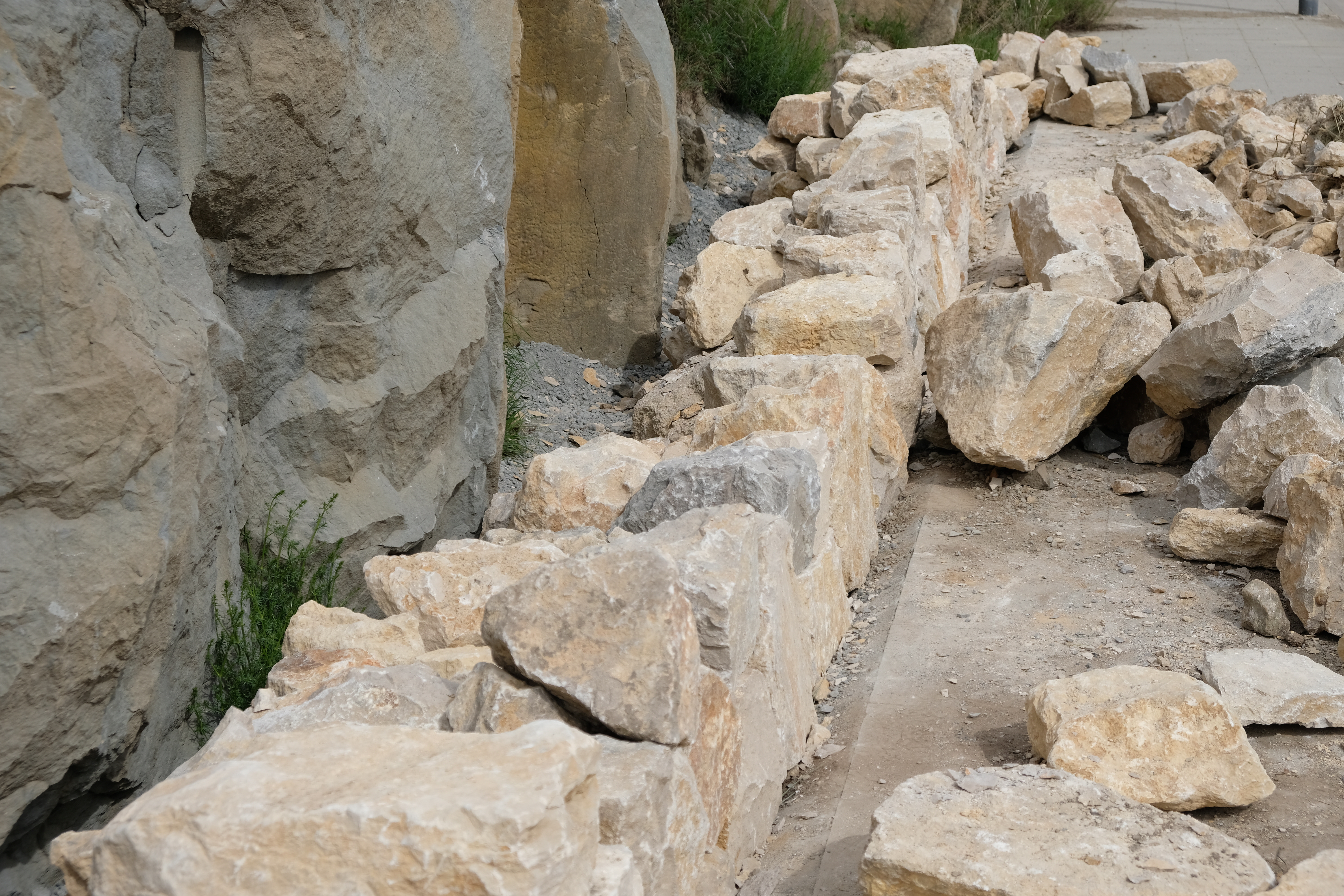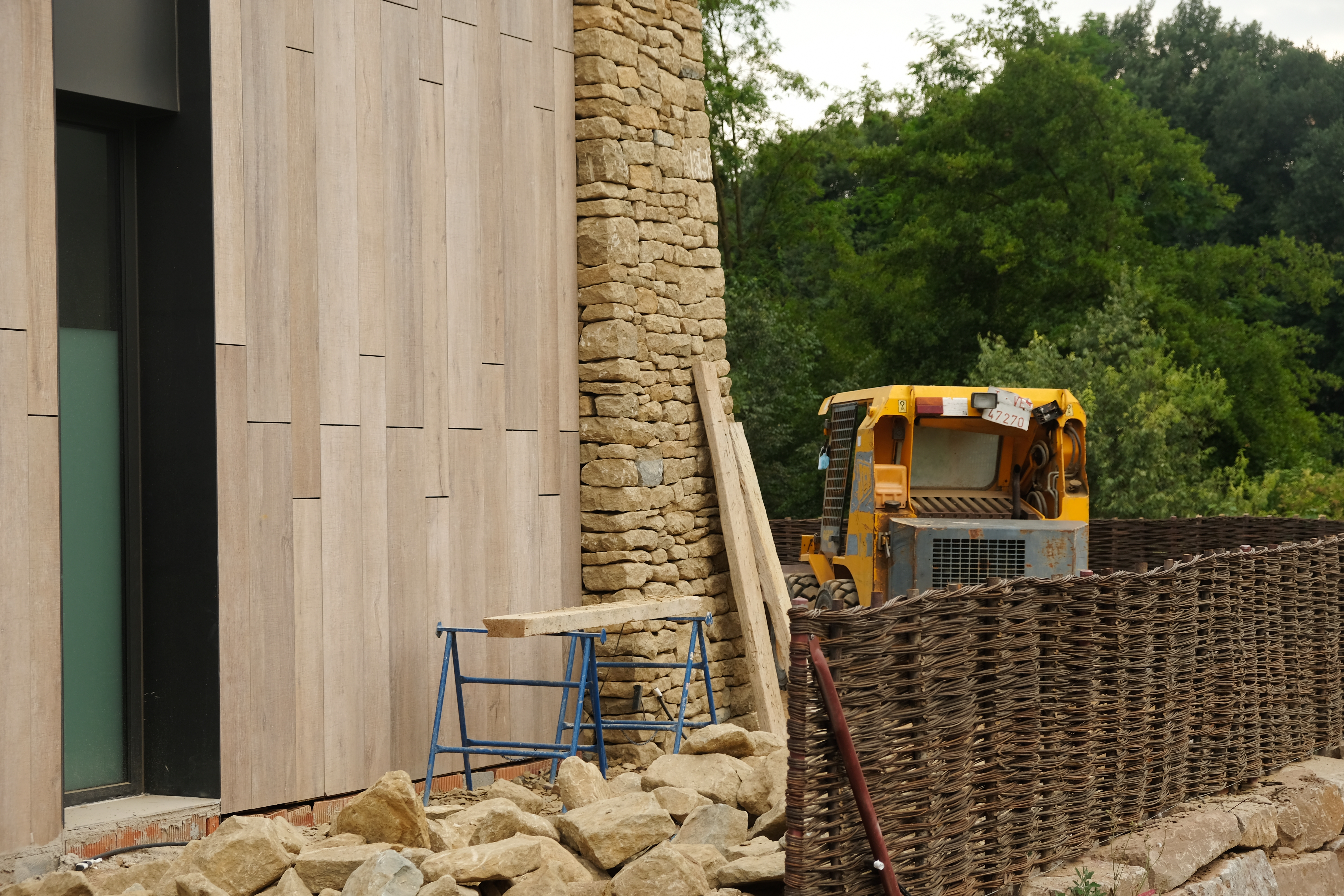 Obra feta a Osona. Amb gresos de “Folgueroles” extrets de la mateixa vila. Un altre cop recobriment d’una façana feta completament en sec amb molt treball de picar pedra.