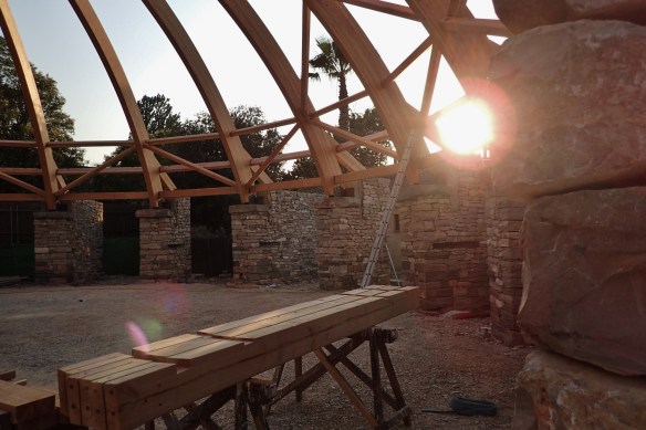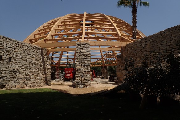 Obra gegant feta en tres mesos la primavera del 2015. Col.locació en sec de sis-centes cinquanta tonelades de pedra calcària provinent de Sallent i Calaf per a fer els divuit pilars que formen la base i estructura per a la cúpula de fusta de vint-i-dos metres de diàmetre. Aquest cop amb gran ajuda de margers vinguts sobretot de França i també un parell d’anglesos, a part de Mallorca i els locals, és clar. Una mitjana de set persones a l’obra amb uns pics de fins a onze treballant per acabar a temps aquest projecte.