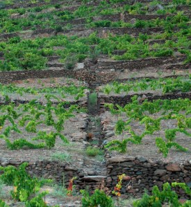 A més d’ocupar-se fent feixes i despedregant la muntanys, aquella gent eren molt hàbils i la seva coneixènça del medi feia que optéssin per fer obres com aquestes canals per desaiguar la muntanya quan hi havíen tempestes fortes. D’aquesta manera, podien dirigir rius d’aigua cap a on volíen i evitaven esfondraments en les seves feixes i els seus murs de pedra seca. Totes aquestes obres són d’una magnitut difícil d’imaginar avui en dia, però en aquells temps passats on la gent vivia a la muntanya allò era “el pa de cada dia”. O sigui que a falta d’altres coses, passaven els seus dies movent pedres amunt i avall i construïnt tota mena d’elements de pedra seca. Evidentment les cabanes associades a la vinya són de les primeres que es van començar a construir, se suposa que per refugi, per magatzem i per passar els dies mentre es treballava i no haver de tornar a casa. Era millor portar la casa al camp i aixi no gastaven tanta energia fent el trajecte de la muntanya al poble. També eren refugi de les famílies durant les èpoques de collita. S’instal.laven allà per temporades concretes i sempre per feina, no pas per fer “vacances”. Moltes d’aquestes barraques segueixen d’empeus però moltes també han caigut. El que és cert, però, és que ara són un monument, una relíquia de l’antiguitat, ja no tenen cap utilitat, tret d’algunes que poden servir de magatzem, però evidentment ja ningú hi fa vida tret de comptades excepcions…