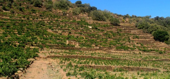 La vinya és un dels paradisos de la pedra seca, a les vinyes del nostre territori veiem mils de metres, de quilòmetres construits de murs de pedra seca de totes mides i alçades. Moltes feixes es continuen cultivant des de fa molts anys, d’altres s’estan recuperant per a plantar-hi més vinya, i moltes també estan abandonades i ja no s’utilitzen i normalment solen estar ocupades per arbres i vegetació salvatge. La majoria d’aquests terrenys cultivats provenen del segle XVIII durant l’expansió de l’agricultura als nostres territoris. Els agricultors eren els encarregats de construir aquestes feixes de pedra seca, netejant les pedres dels camps aprofitaven aquestes per a construir els murs que els feien guanyar terreny cultivable. Amb el temps van anar apareixent els margers que es van especialitzar en la pedra seca. La resta dels habitants eren els la seva ma d’obra en la construcció dels murs. Les èpoques de menys activitat en l’agricultura eren aprofitades per la població per a construir metres i metres de feixes i murs. En alguns territoris els propietaris adjudicaven terrenys a cada família per a que cultivessin els seus propis terrenys, i també a causa d’això veiem els clàssics murs de separació de terres,… evidentment els propietaris treien un gran rendiment de la feina dels seus subordinats, com bé sabem i així la història ho reflecteix.
