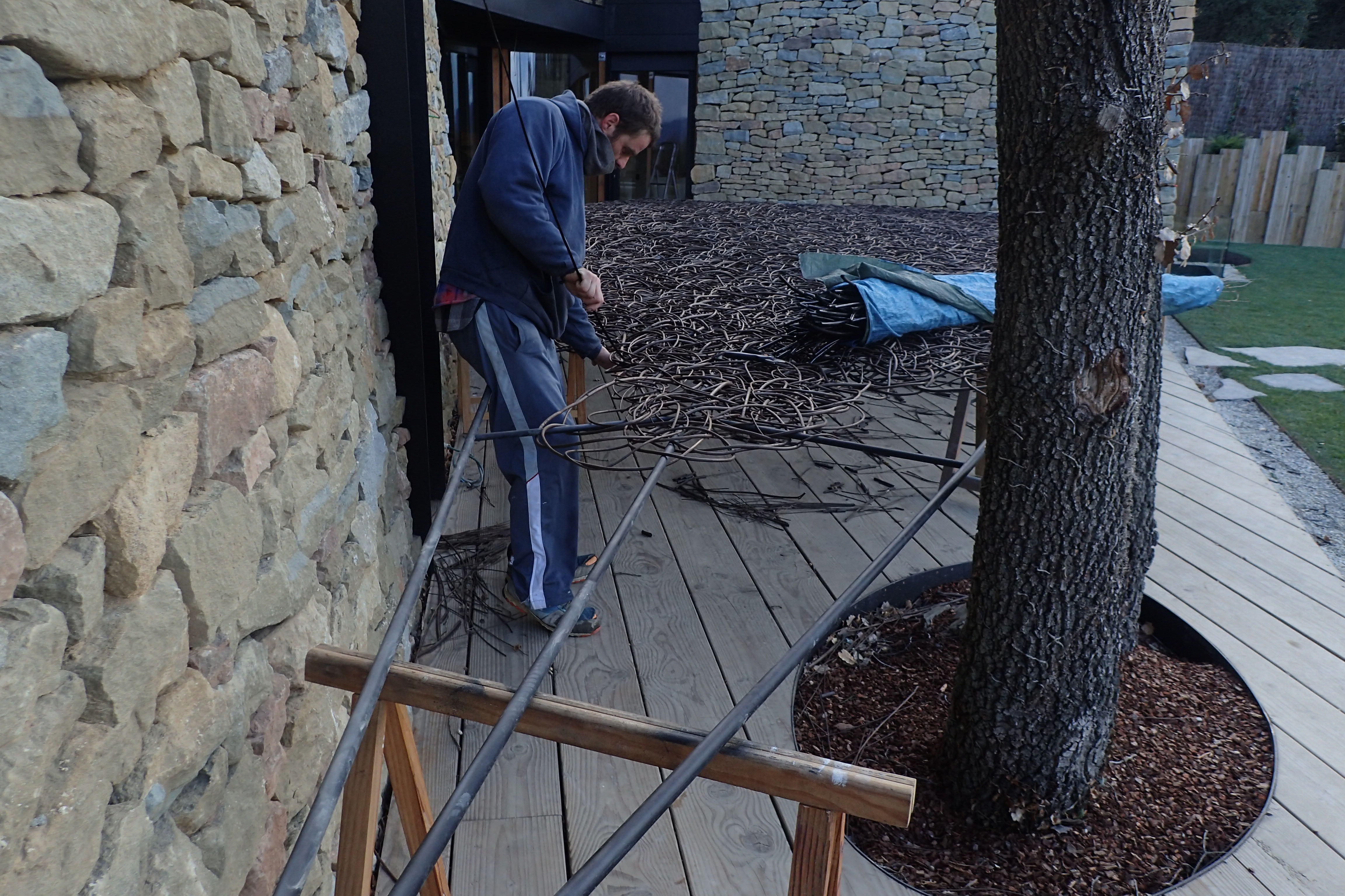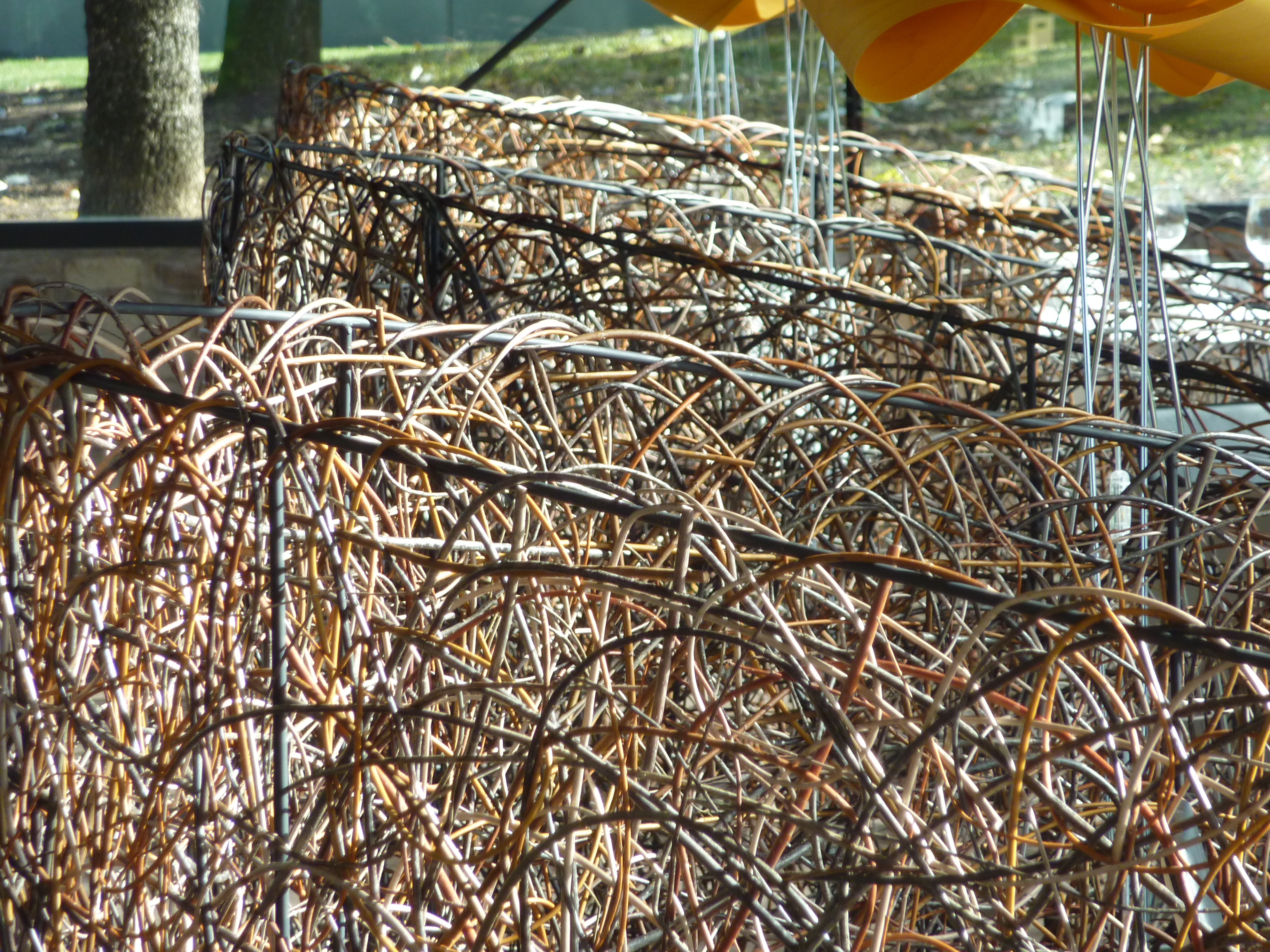 Com que hi ha tantes possibilitats us mostrarem algunes obres fetes per lafeixapedraseca. Des de l’inici, hem tractat de “vendre” la possibilitat de combinar vímet i pedra ja que són dos elements naturals que lliguen molt i tenen moltes possibilitats tan junts com de costat. Finalment, després d’alguns anys d’insistir hem aconseguit barrejar els dos elements i els dos arts en una mateixa obra i com veureu en les fotos combinen perfectament.