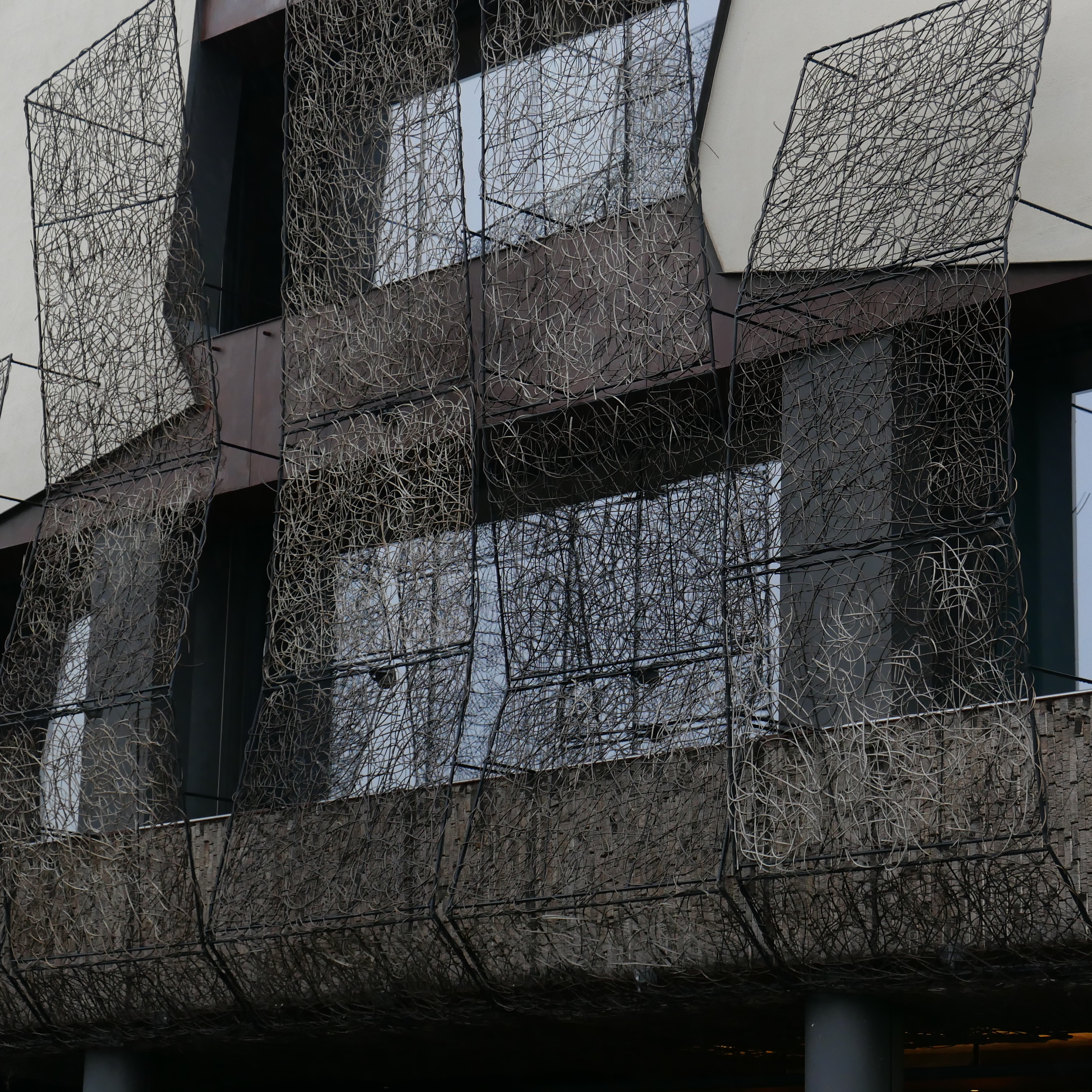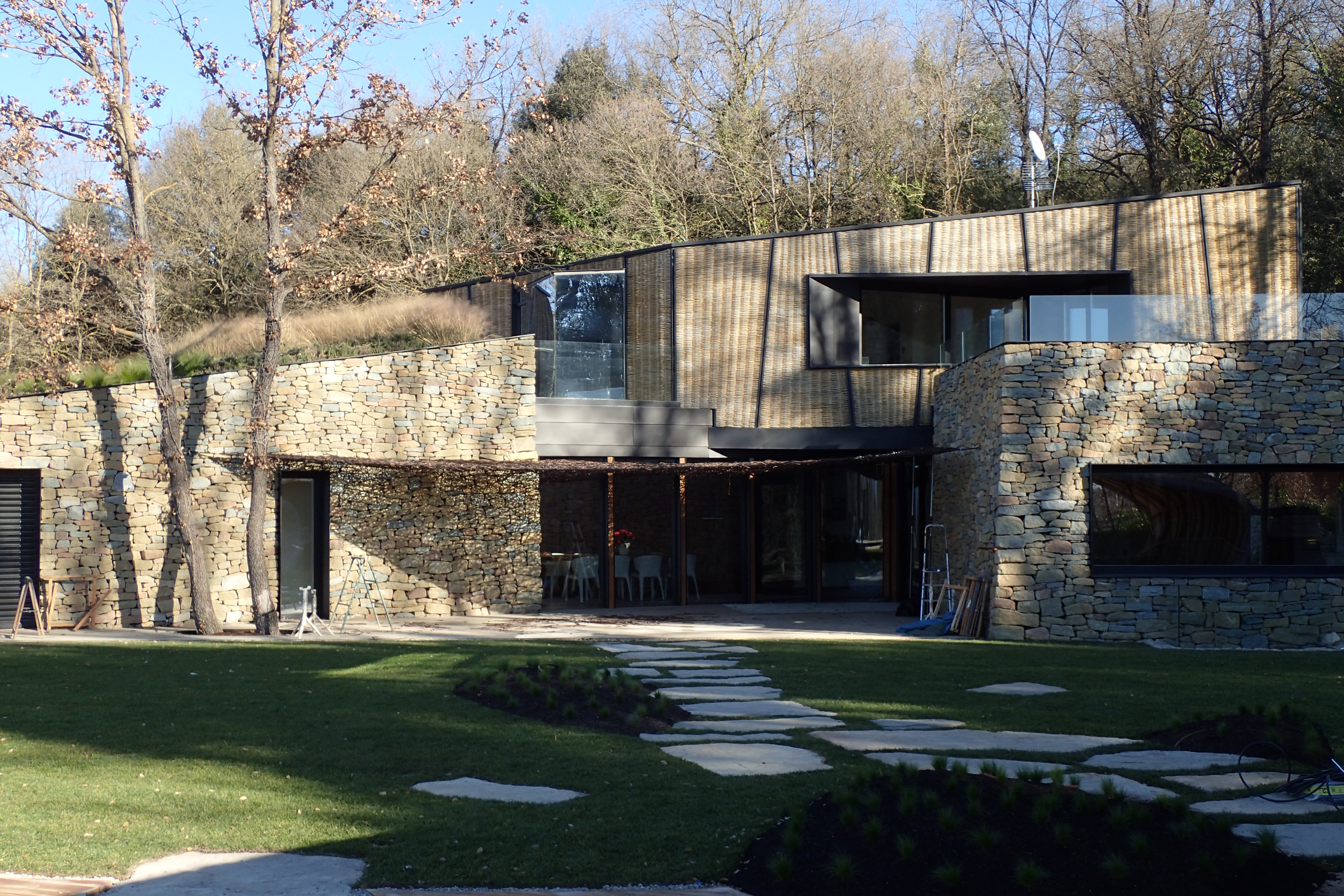 Aquesta és una obra “emblemàtica”, on veiem aquesta combinació dels dos elements: vímet i pedra. És una façana feta de plaques de vímet tractat per exterior de formes irregulars que li donen uns volums peculiars. En aquest cas el trenat és el que podríem anomenar clàssic d’una sola branca de vímet a cada passada. Aquestes plaques li donen uns tons naturals depenent de l’hora del dia i permet que la façana de la casa transpiri a través d’aquest vímet. Es tracta d’una obra avantguardista i una simbiosi perfecta entre pedra i vímet en una casa de nova construcció sostenible.