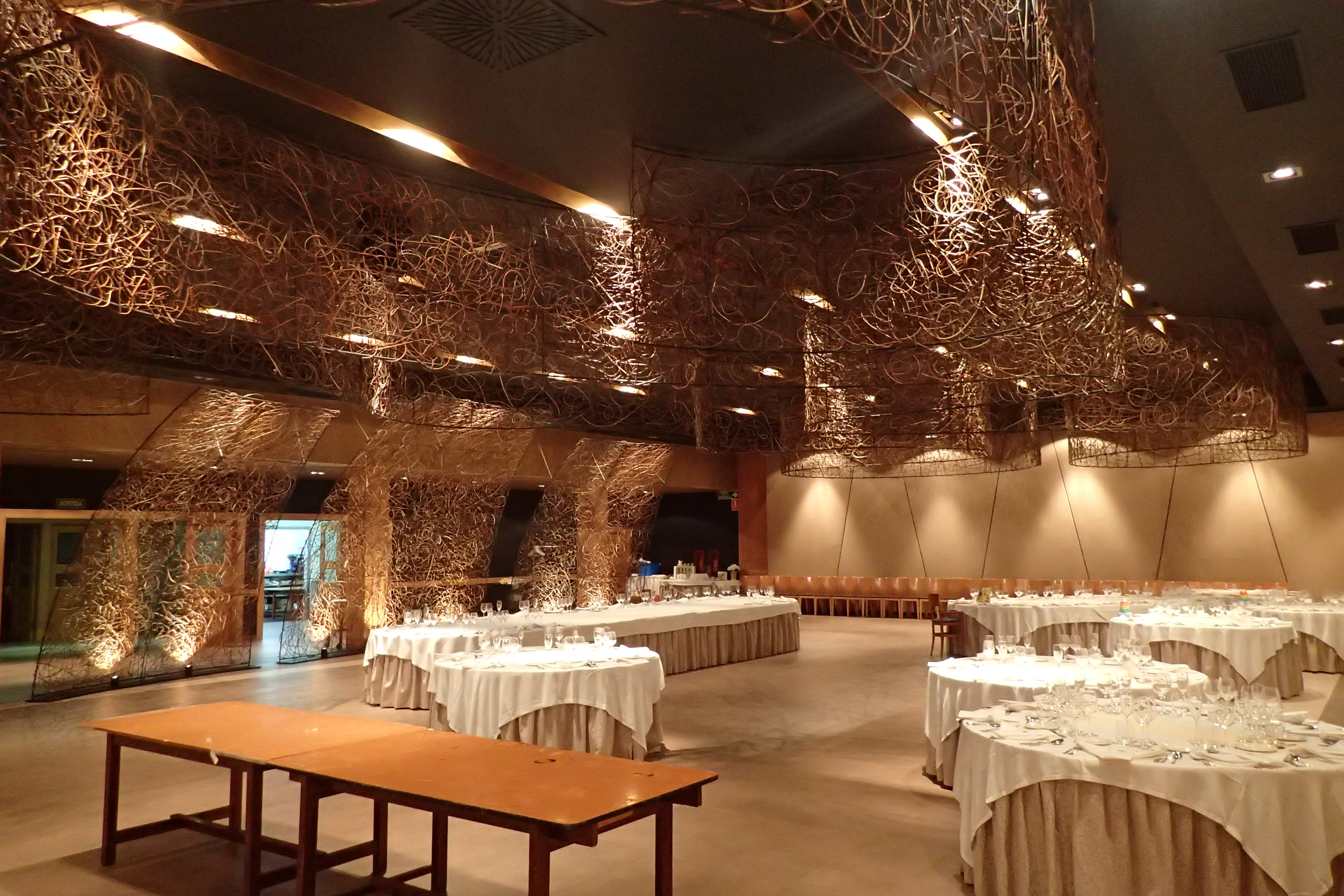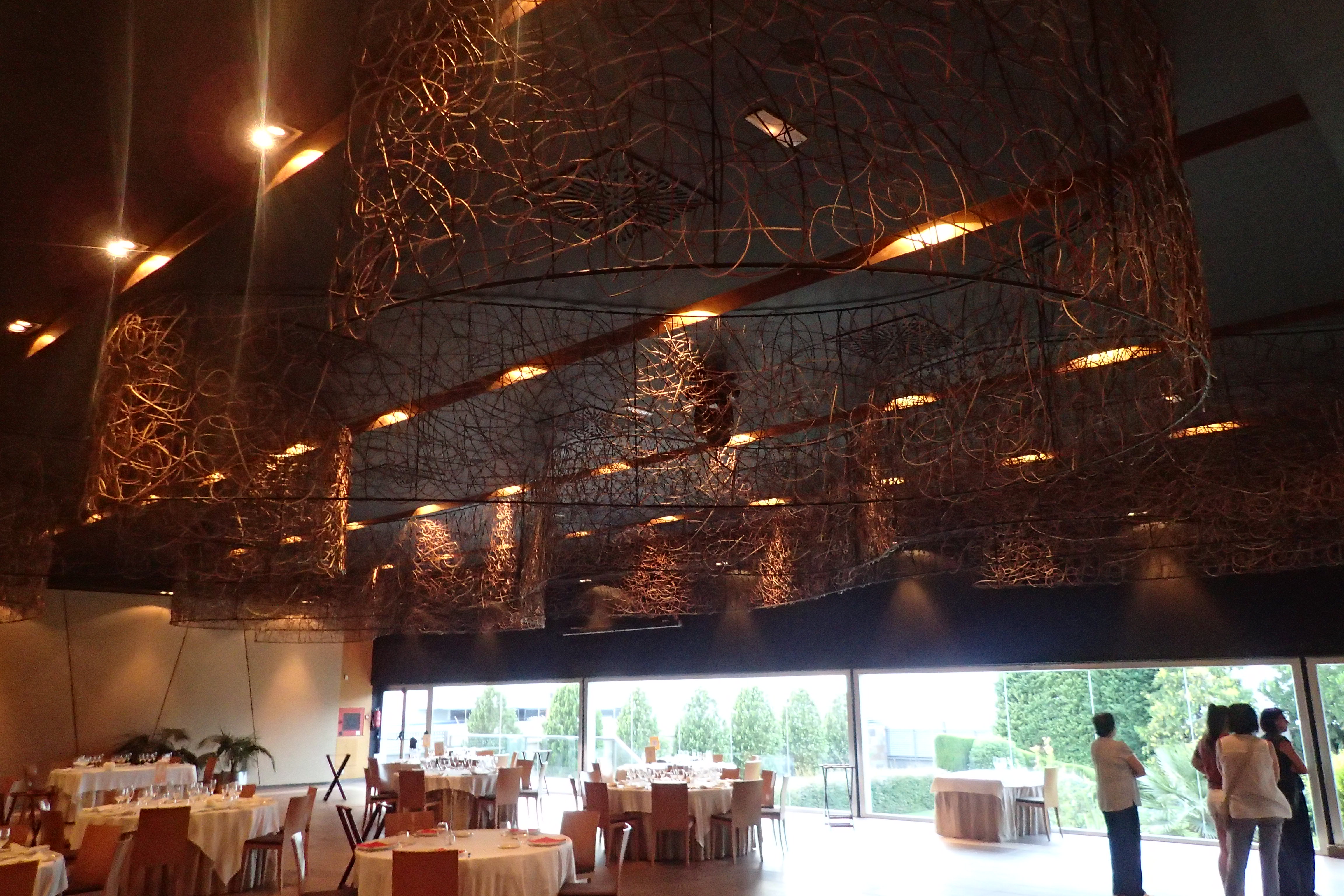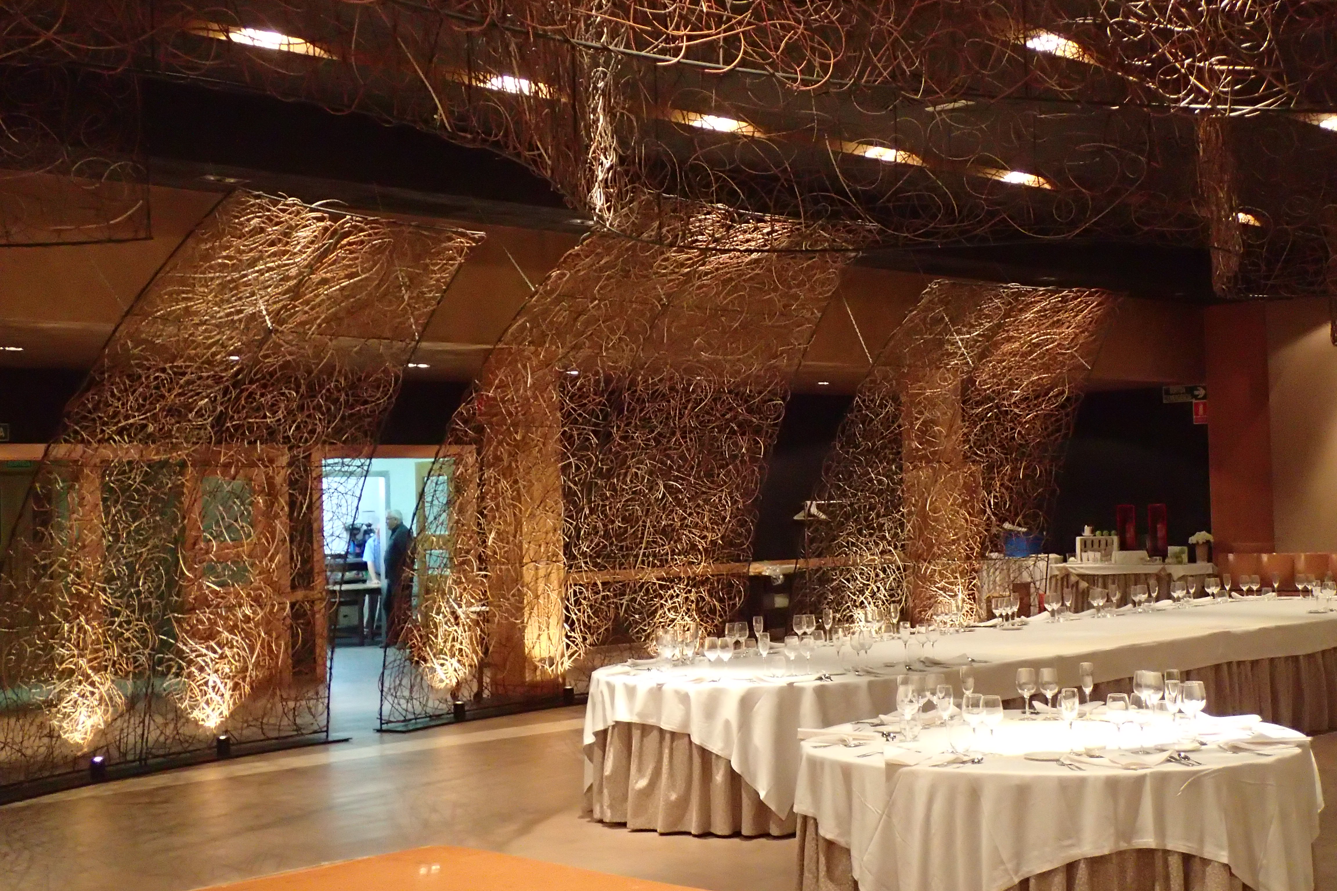 Restaurant El Resquitx de Mollerussa. Inauguració de una nova sala de banquets de casament amb dues sales que es poden unir i una decoració que surt de terra i es prol.longa cap al sostre en forma de plaques serpentejants amb vímet esbotxat de varietats i colors diferents. Les peces són estructures de ferro que s’uneixen durant el muntatge per donar aquestes sanefes de fins a trenta metres de llargada. Realment una obra força titànica per aquesta sala tant gran d’aquest lloc mític de Mollerussa i les comarques de Lleida. Potser no serà reconegut com el millor restaurant del món però podem assegurar que la seva gent sí que ho són!…