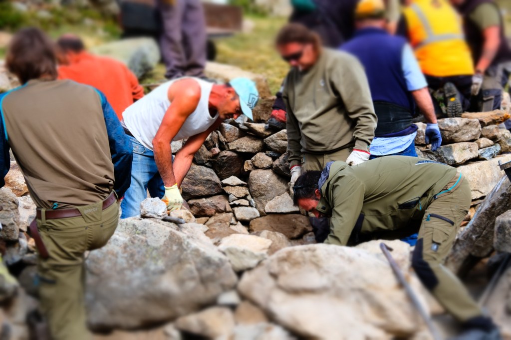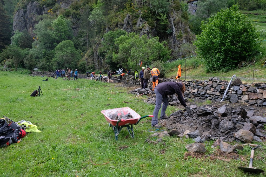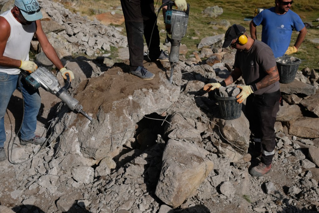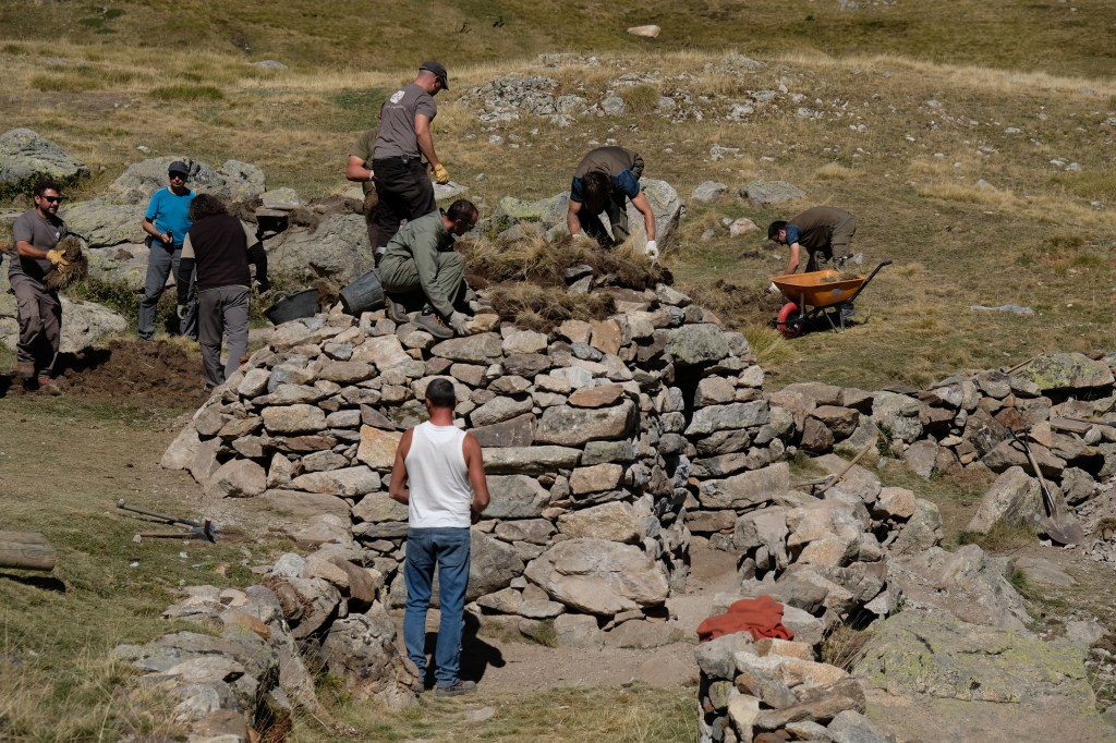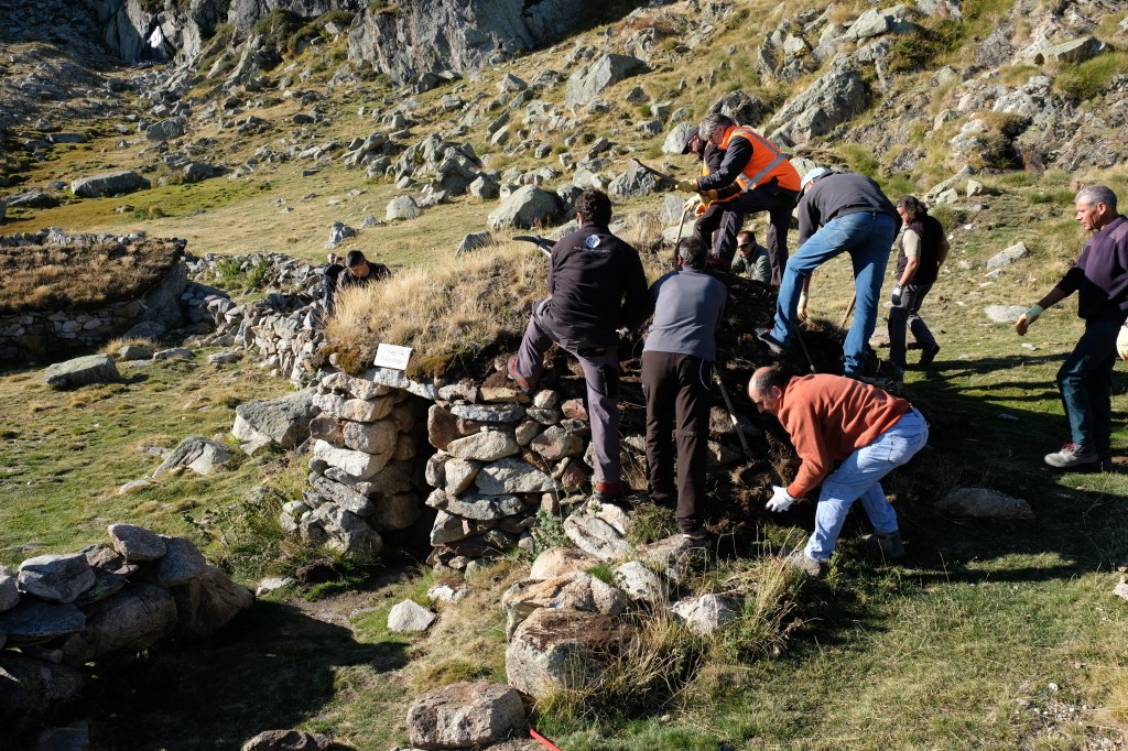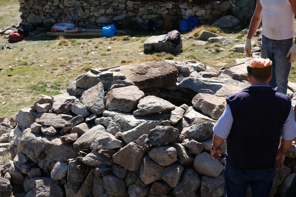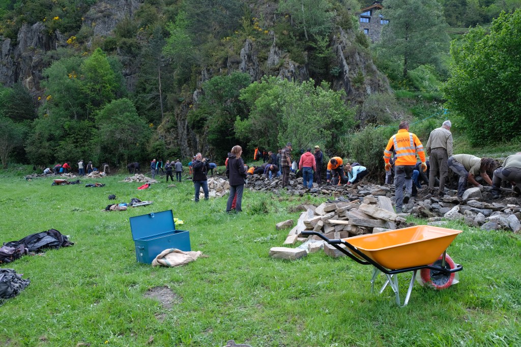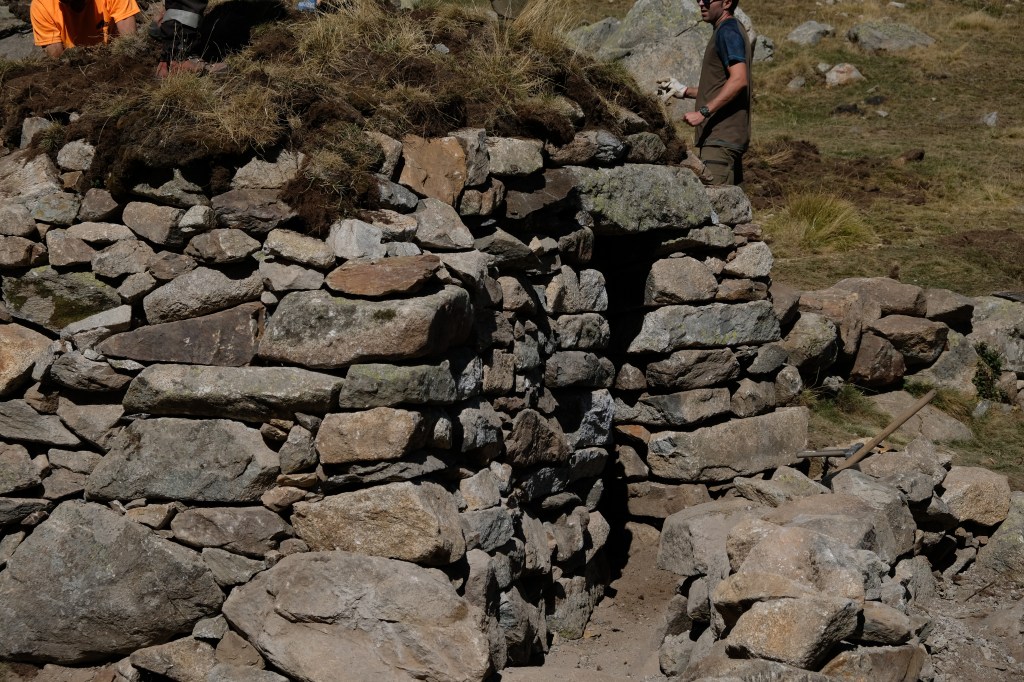 La primera setmana d’aquest segon mòdul va ser a alta muntanya prop dels 2400 metres a Grau Roig, al comú d’Encamp i es va desmuntar completament una barraca de pastor de l’Orri del Cubil, indret bastant visitat a Andorra. Com que la darrera restauració datada del 2011 es va fer de manera incorrecta (per dir-ho finament), amb molt ciment, formigó i inclús formigó armat al sostre; va costar una mica desmuntar tota la barraca però finalment la vam reconstruir de manera íntegra aprofitant lloses grans dels voltants de l’Orri que vam arrossegar fins i tot amb troncs. En aquesta primera setmana del segon mòdul els participants eren Banders de diversos comuns i també obrers de la construcció d’algunes empreses del Principat, una vintena de persones en total. Vegeu algunes imatges de l’esdeveniment!