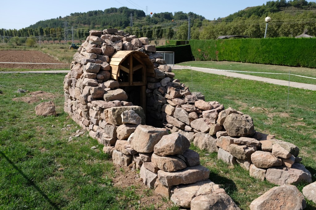 Per tant hem fet el que seria la porta de la mina amb una estructura de volta de canó suportada per un cindri fet amb fusta de roure. La pedra utilitzada és de la zona i per tant pràcticament idèntica que la pedra original de la mina. Finalment ha quedat una peça de cinc metres de llarg que deixa veure part del cindri i també deixa veure l’arc en volta a la façana d’aquesta entrada de la mina imaginària.