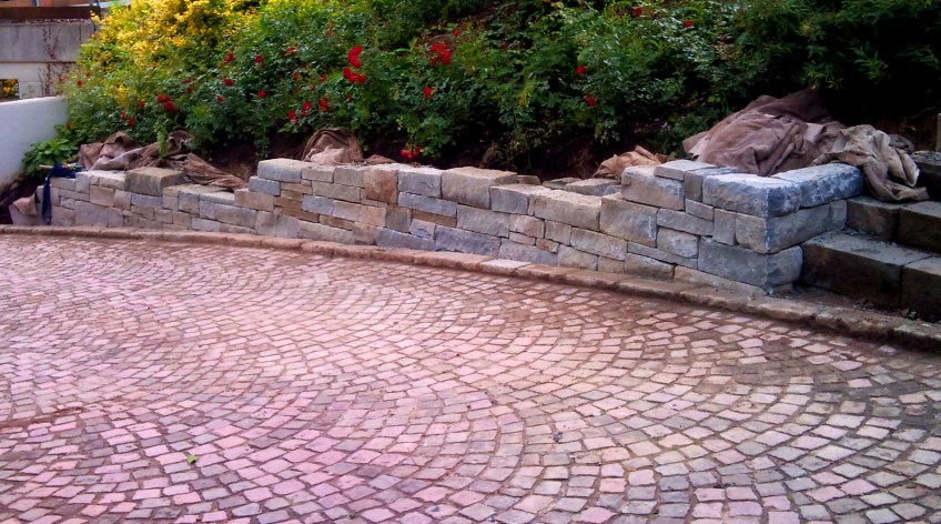 petit mur, empedrat i jardí