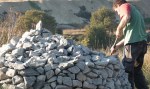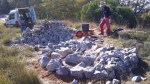 Després de parlar amb el grup de defensa dels animals de la comarca sobre alguns projectes que havíem fet, va sorgir la idea de fer una mena de construcció que pogués servir per a protegir la tan fràgil població d’eriçons comuns de la regió. Es tracta d’un refugi natural pels eriçons amb uns túnels a la part baixa i algunes entrades petites per la seva mida. Alguns túnels s’enllaçen entre si i d’altres acaben en uns caus, unes cavitats que hauríen de ser el refugi perfecte per a que criin. Per sobre d’aquest entramat, hem pujat una bona alçada de pedra, col.locada de manera precisa per a que la construcció sigui sòlida i permanent… En total hem utilitzat entre sis i set tones de pedra per a cada eriçonera.