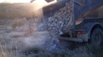 La pedra és de la zona nord de la comarca d’Osona i són roques calcàries d’una pedrera extretes i carregades directament al camió sense triar ni retocar. Com que algunes arriben arriben amb formes ben extranyes i algunes són molt grans, ens toca rematar-les amb els malls i els martells. Encara que siguin de la Plana, es tracta d’un calcari molt dur i resistent al gel, d’un color gris blavós, d’una capa de roca prou ficada a l’interior de la terra…