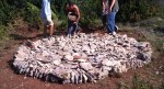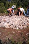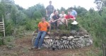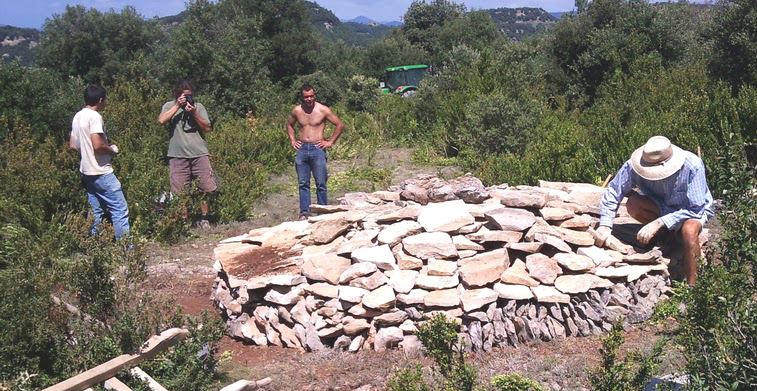 Les vedrunes són uns refugis pels conills, en castellà “majanos”, més coneguts pels caçadors que per la resta de població. Aquest cop n’hem fet un parell vora la cinglera de Tavertet, mirant cap a Sau…Els de Ecotons, empresa de custòdia del territori ens fitxen per a fer d’arquitectes d’aquestes construccions. I aquí tindrem uns ajudants de primera que són els caçadors de Tavertet gairebé al complet, a més de tenir un tractor també com a reforç per a portar perdra i les gleves que col.locarem sobre les vedrunes. Les vedrunes es fan per afavorir la cria natural dels conills que hi ha salvatges al territori, perquè trobin un refugi ràpid i a recer de les aus rapinyaires, on puguin viure i criar en el seu interior. El procés que hem seguit és senzill: Primer buscar la zona on hi ha els clapers més grans i amb millor roca per a construir; és a dir, amb lloses grans i planes i amb pedra bona per a les parets i l’interior de la vedruna. Llavors plantejem la planta segons la grandària que volem, i comencem a fer els túnels i les cavitats de cria. Els túnels han d’estar comunicats i tenir una entrada i una sortida per si entren depredadors, que els conills puguin sortir per l’altra banda. De fet les entrades pels conills ja limiten una mica l’entrada de depredadors de mida gran. Llavors tapem bé els túnels amb lloses perquè no hi hagi esfondraments. Després vé la fase de construir i pujar paret amunt fins que la quantitat de roques ho permetin o la cosa es vegi prou correcte. Com més pedra hi fiquem, més protegits quedaràn els caus i els túnels, protecció de l’aigua i del fred. Finalment omplirem de terra i gleves de vegetació al damunt com en les barraques, per acabar de fer un tancament impermeable de l’aigua. Hem optat, seguint l’estil de la zona, per fer les parets amb les pedres en forma de rastrell, és a dir planes i de forma vertical.