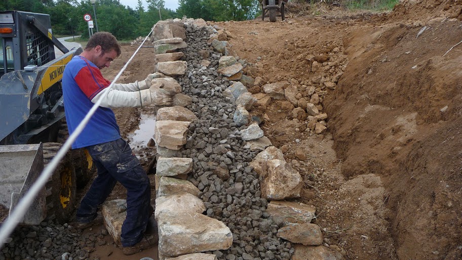 afinant la façana. Detall del reble i el contramur Published 14 d'Agost de 2012 at 912 × 514 in Esglesia vella de Sant Bartomeu: Recuperació de l’antic marge de pedra seca