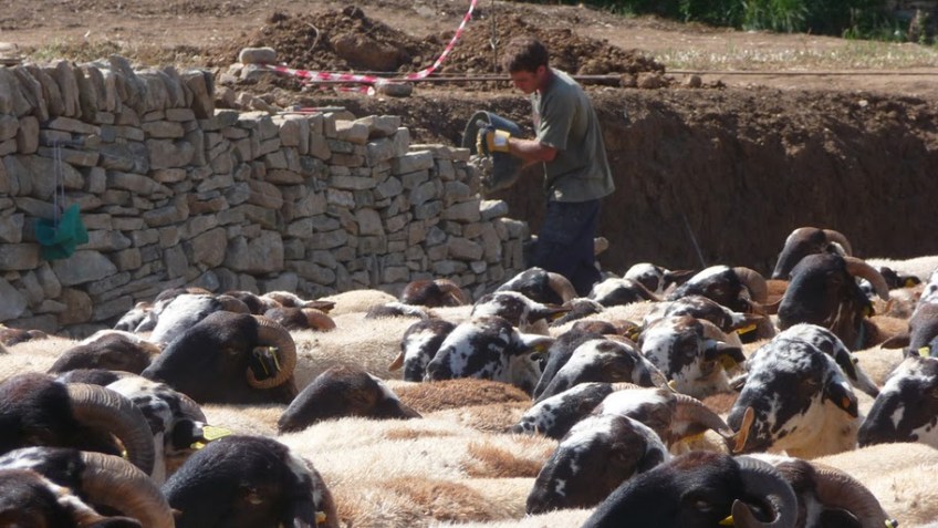 treballant entre ovelles Published 14 d'Agost de 2012 at 912 × 514 in Esglesia vella de Sant Bartomeu: Recuperació de l’antic marge de pedra seca