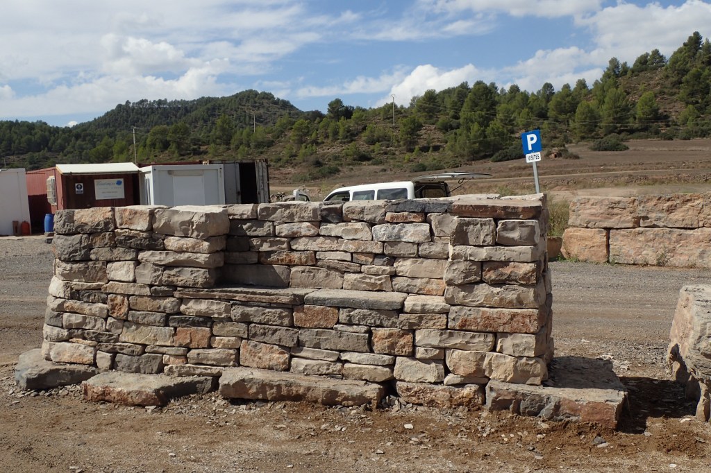 La proa a Sallent Ubicació de l’obra a l’entrada de la pedrera per a dividir entrades i sortides… Detall que dóna el nom a l’obra: la proa amb dos esglaons Banc incrustat a l’estructura