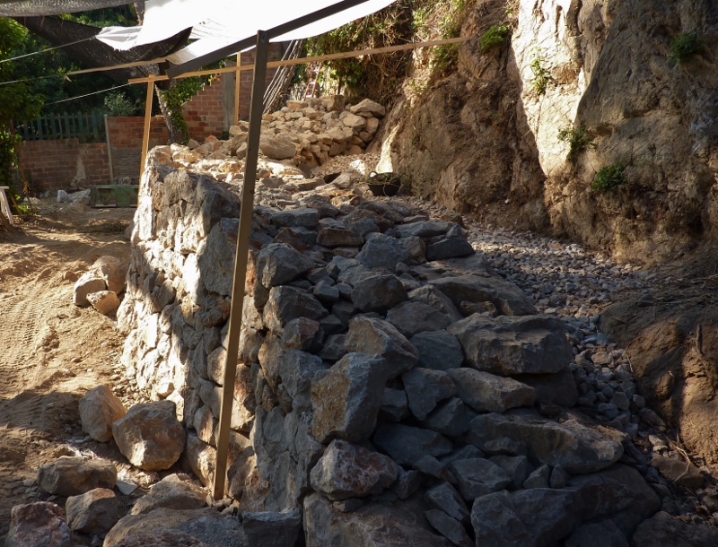 vista de l’estructura d’aquest mur…bon gruix de la paret i reble de grava grossa a la part interior pel bon drenatge Published 30 de Març de 2014 at 800 × 610 in Mur de retenció de pedra seca de cinc metres d’alt