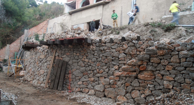 ja allargant el mur de pedra superior amb la base ja acabada Published 30 de Març de 2014 at 800 × 436 in Mur de retenció de pedra seca de cinc metres d’alt