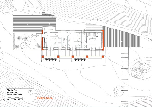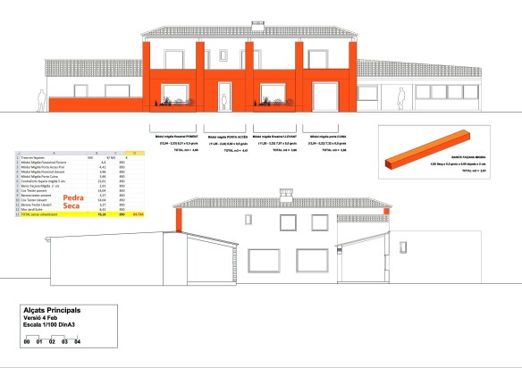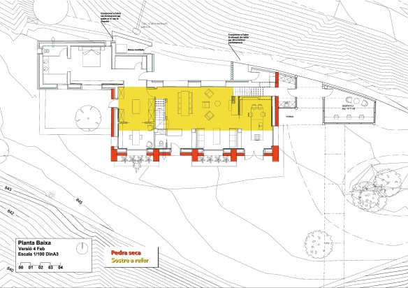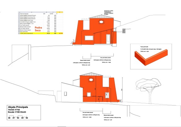 Finalment la façana est i la oest no es van fer però la principal sud amb els cinc contraforts va ser la “joia” que ens van deixar. Amb lleugeres modificacions sobretot als tres pilars centrals i el coronament de la façana qua alhora fa de bancada, la resta es va poder fer més o menys com estava previst. Altres elements secundaris tampoc es van fer.